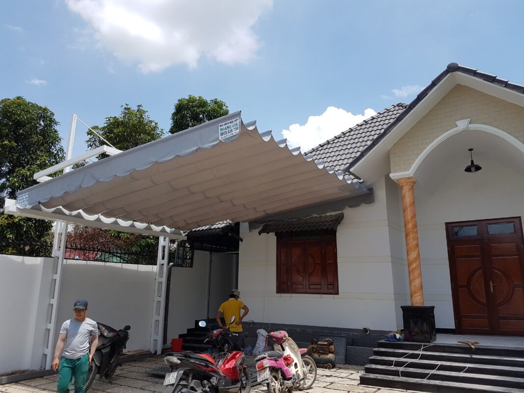 2. Mái bạt – Lá chắn che nắng mưa hiệu quả